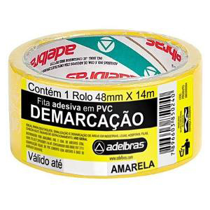Fita adesiva amarela para demarcação de áreas, 48mm de largura por 14 metros de comprimento, ideal para sinalização em ambientes industriais, comerciais ou residenciais. Produto durável e resistente.